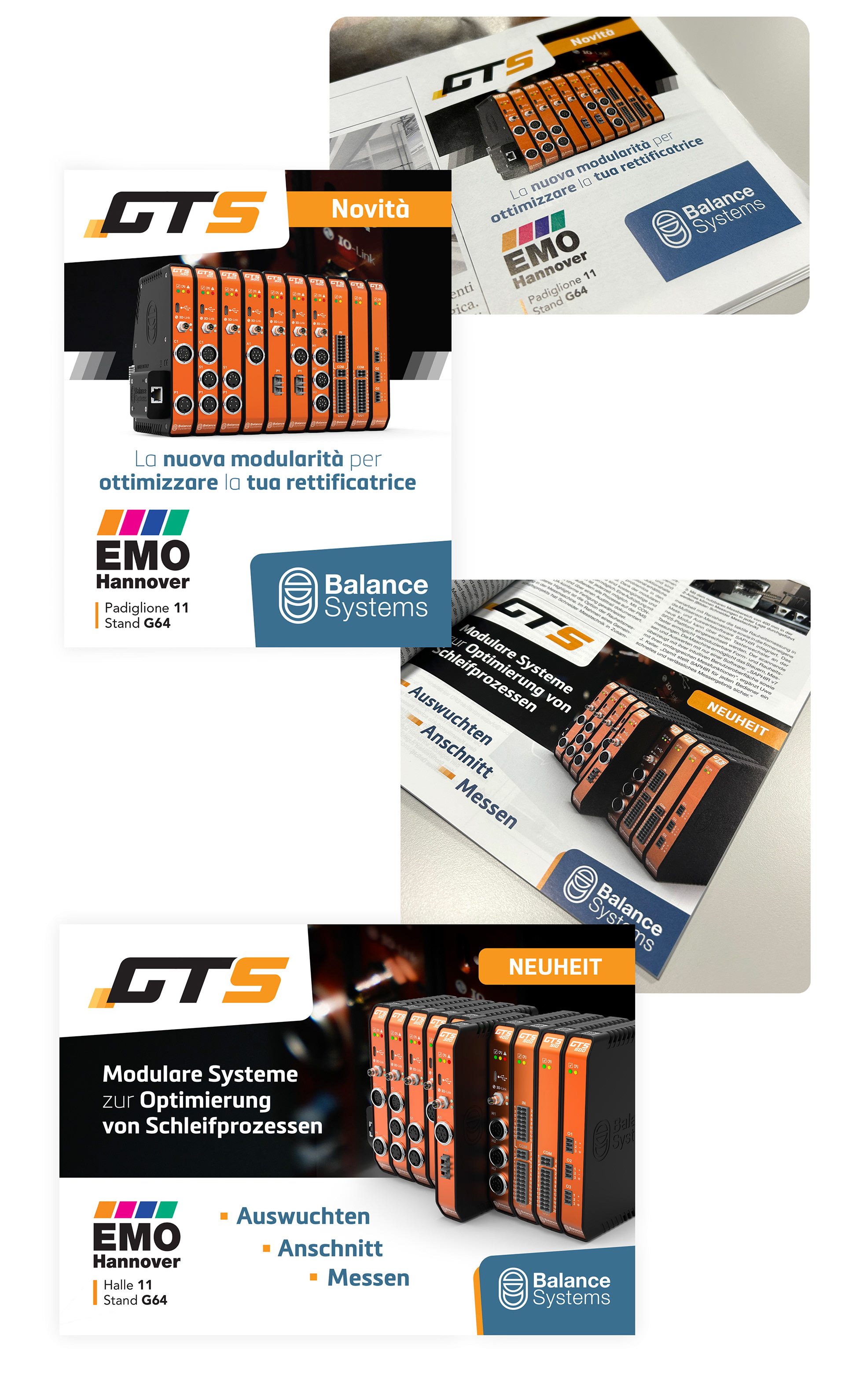 Sviluppo e creatività per la landing page dedicata al prodotto GT-S, con layout responsive, grafiche custom e call-to-action ottimizzate per massimizzare le conversioni durante il lancio. In parallelo, ho sviluppato la creatività della brochure multilingua (italiano, inglese, tedesco, spagnolo), dal concept visivo all'impaginazione con infografiche tecniche, specifica per il lancio del prodotto e la fiera EMO.
